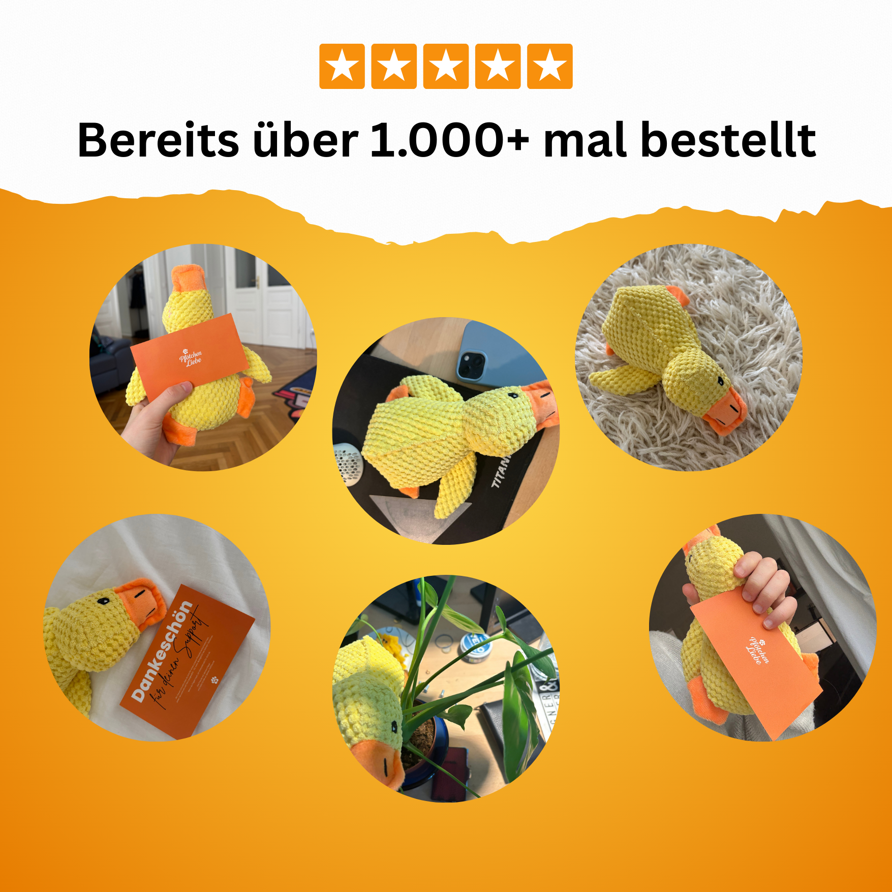 Dank ihrer stabilen Verarbeitung hält sie auch intensiverem Spielen stand. Das integrierte, dezente Quakgeräusch weckt den Spieltrieb deines Hundes, ohne dabei aufdringlich oder störend zu wirken – im Gegensatz zu vielen lauten Alternativen.